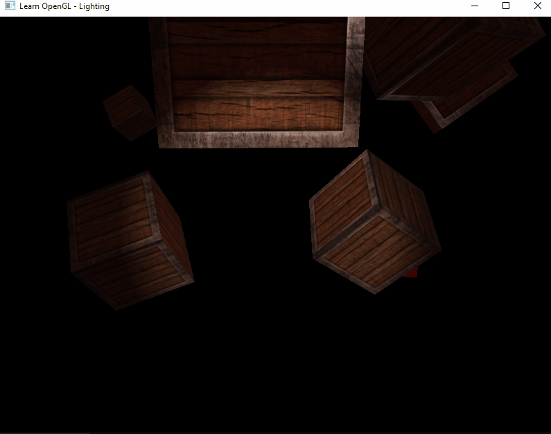Implementation, in C++ and OpenGL, of a dark scene with different kinds of light (directional light, point light and spotlight) and, diffuse and specular texture maps.