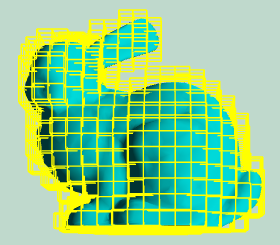Implementation of an Octree to partition a mesh and allow to select its AABB according to a given level. The vertices inside that box are painted int red. The mesh is rendered using WebGL with lighting. You can try it with the following link.